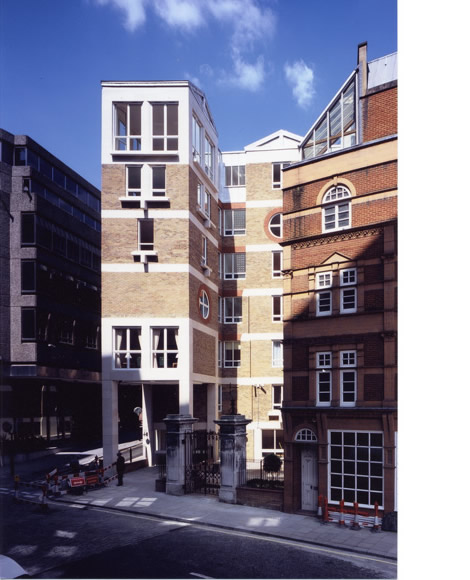 By careful contextual design and close coordination with the City planning department, we obtained consents first for a new office building and then subsequently for a new apartment building. Berkley Homes bought the site with planning consent and Monument House was then constructed to our design. The building comprises 37 apartments on all floors, which are mostly single aspect, and with underground parking beneath. Larger apartments are situated at the southern end, incorporating the grander tower rooms. The building was commended by The City of London Corporation.